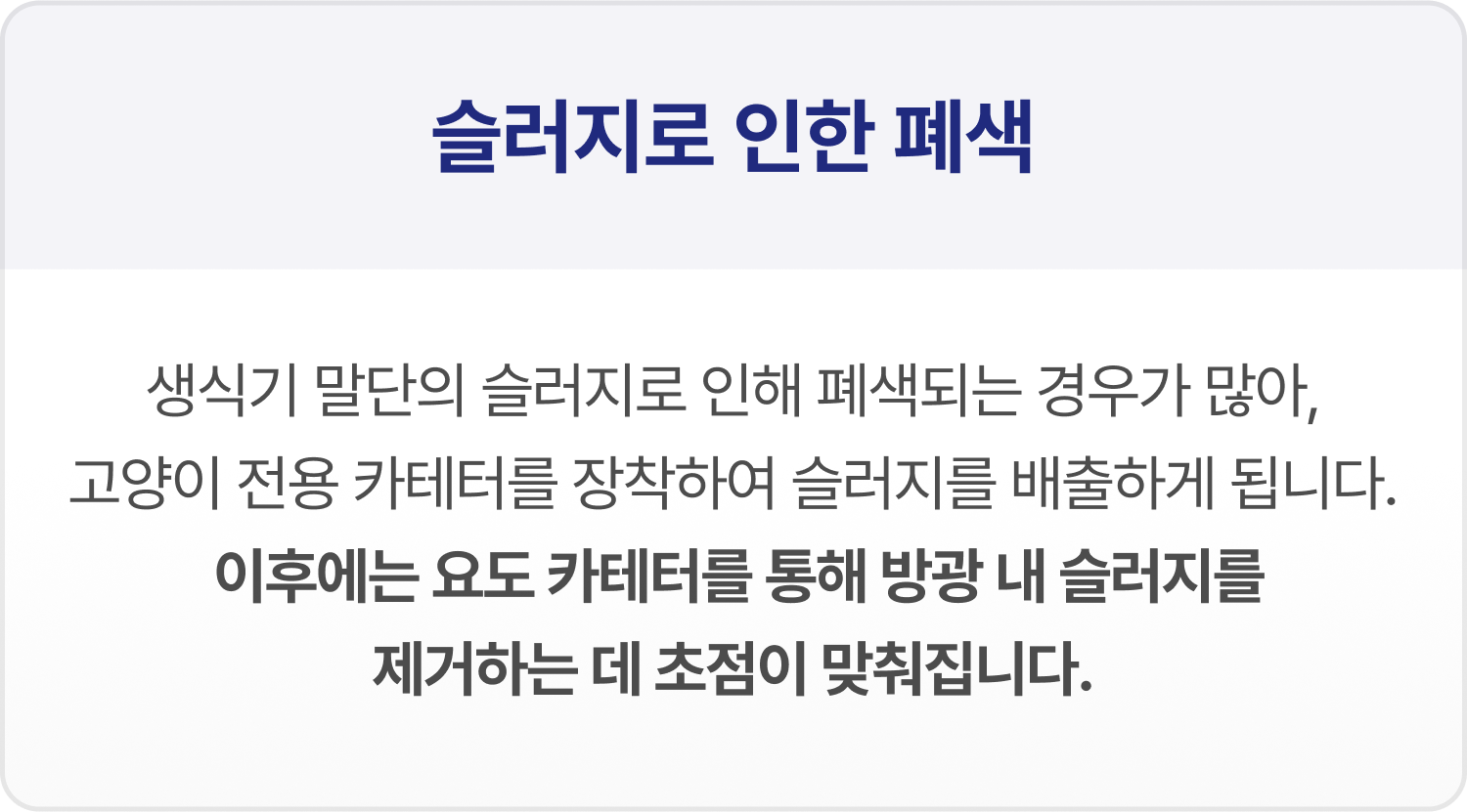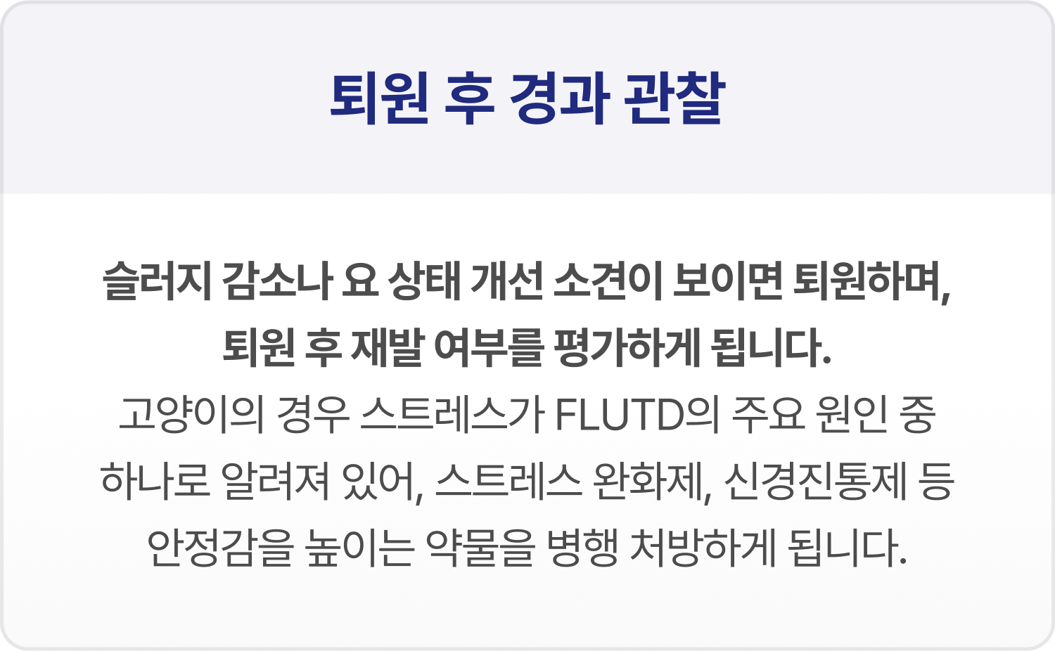 수컷 고양이의 경우 요도가 길고 좁아 폐색이 더 쉽게 발생하며, 방광염, 요도 플러그(슬러지, 세포, 결정의 혼합물), 스트레스 등 다양한 원인이 관여합니다.
